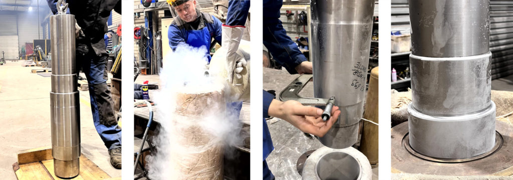 Nous avons monté l’arbre sur le galet en quelques instants, en jouant sur les températures simultanément. Galets chauffés à 180 degrés et arbres refroidis avec de l’azote liquide à – 200 degrés, soit 400 degrés d’écart entre les deux éléments à monter ensemble. Une fois revenus à une température identique, le montage est sûr et précis >> un client satisfait !